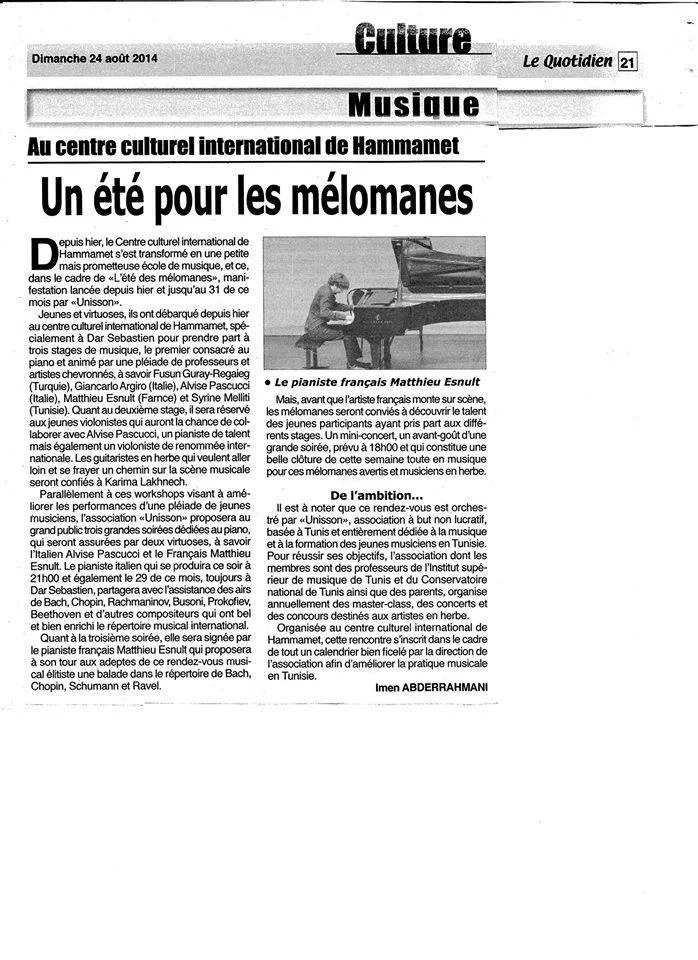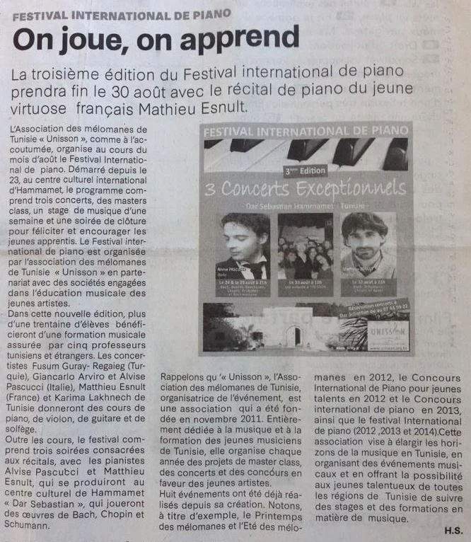 Le Petit Journal, Tunisie, 01/07/2013 Musique - 2ème édition du Festival international de piano.